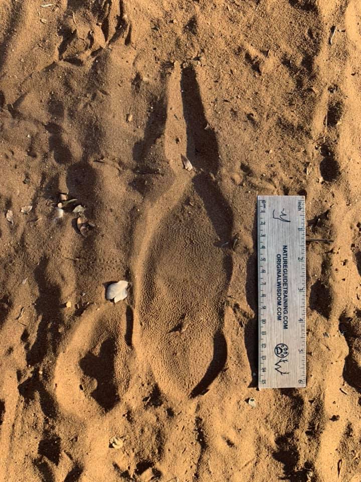 The left foot’s track from an ostrich, photo by Kersey Lawrence.