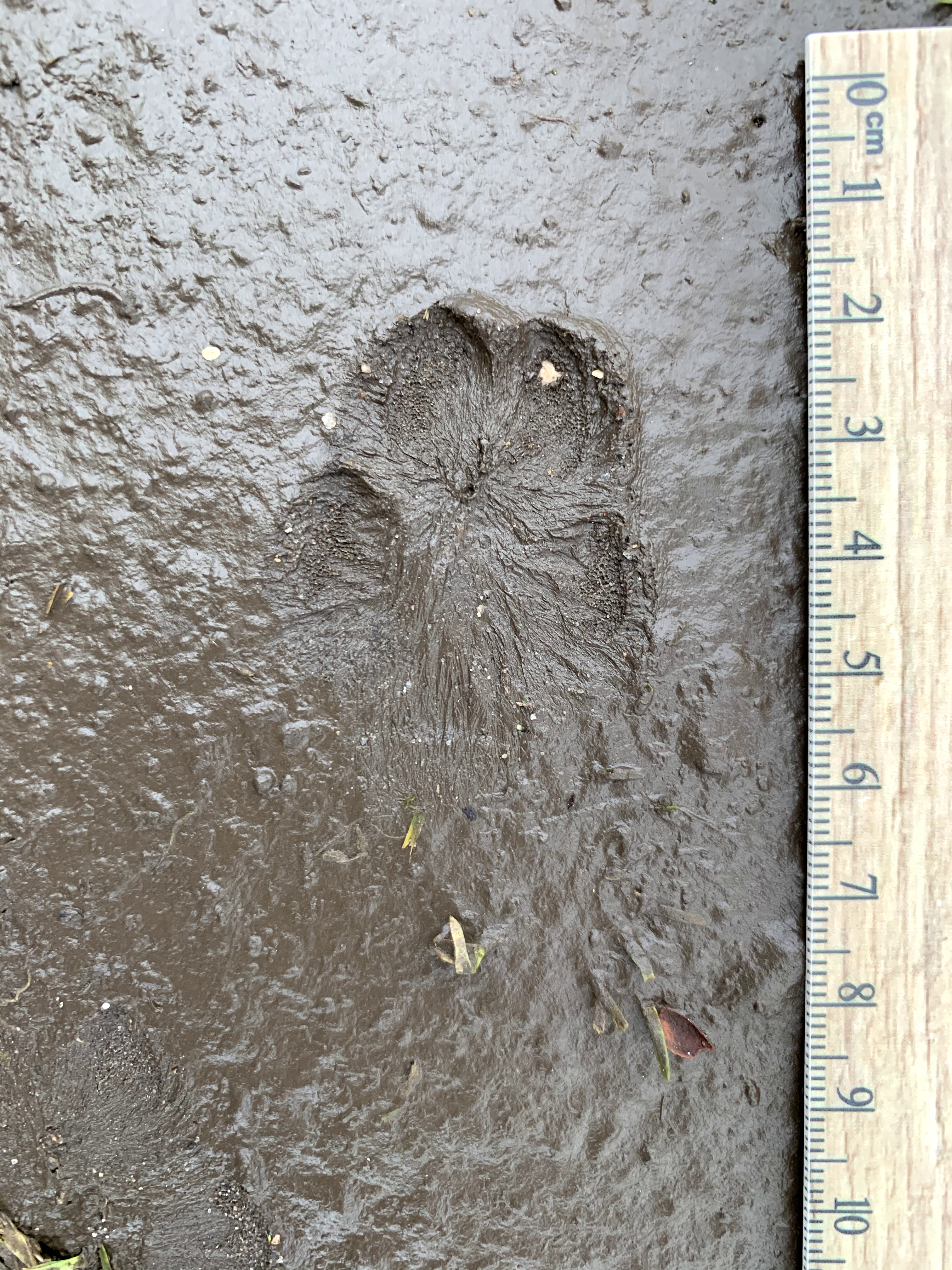 Robert Hendrix (USA) – I’m seeing fur on pads, and right size for fox. pressure release – to me – shows possibly being very sneaky and quiet. I only have experience with reds and haven’t seen grey sign that I know of. So, it would only be a guess, the hairy pads is really all I know. I did see a post about the nails not registering. Normally I’ll see a bit of nail – but if this guy waz tipy toen his nails might be up far enough not 2 register. If that’s even the case, soooo, I’d guess red fox.