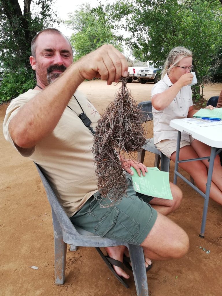 A red-headed weaver nest constructed of petioles, photo by one of our FGASA students (please tell me if it’s yours and I will credit you).