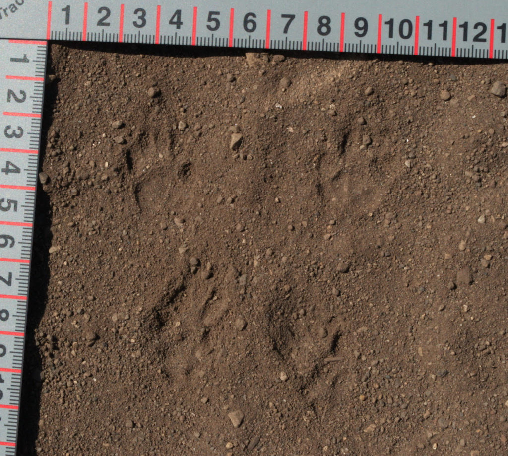 Try to identify the feet in the tracks, which are the fronts and which are the hinds? Does it have 2 feet (a bird), 4 feet (most mammals), or more (most invertebrates)? Take photos, from directly overhead, using scale, of the groups of tracks – their position relative to each other can be very helpful.