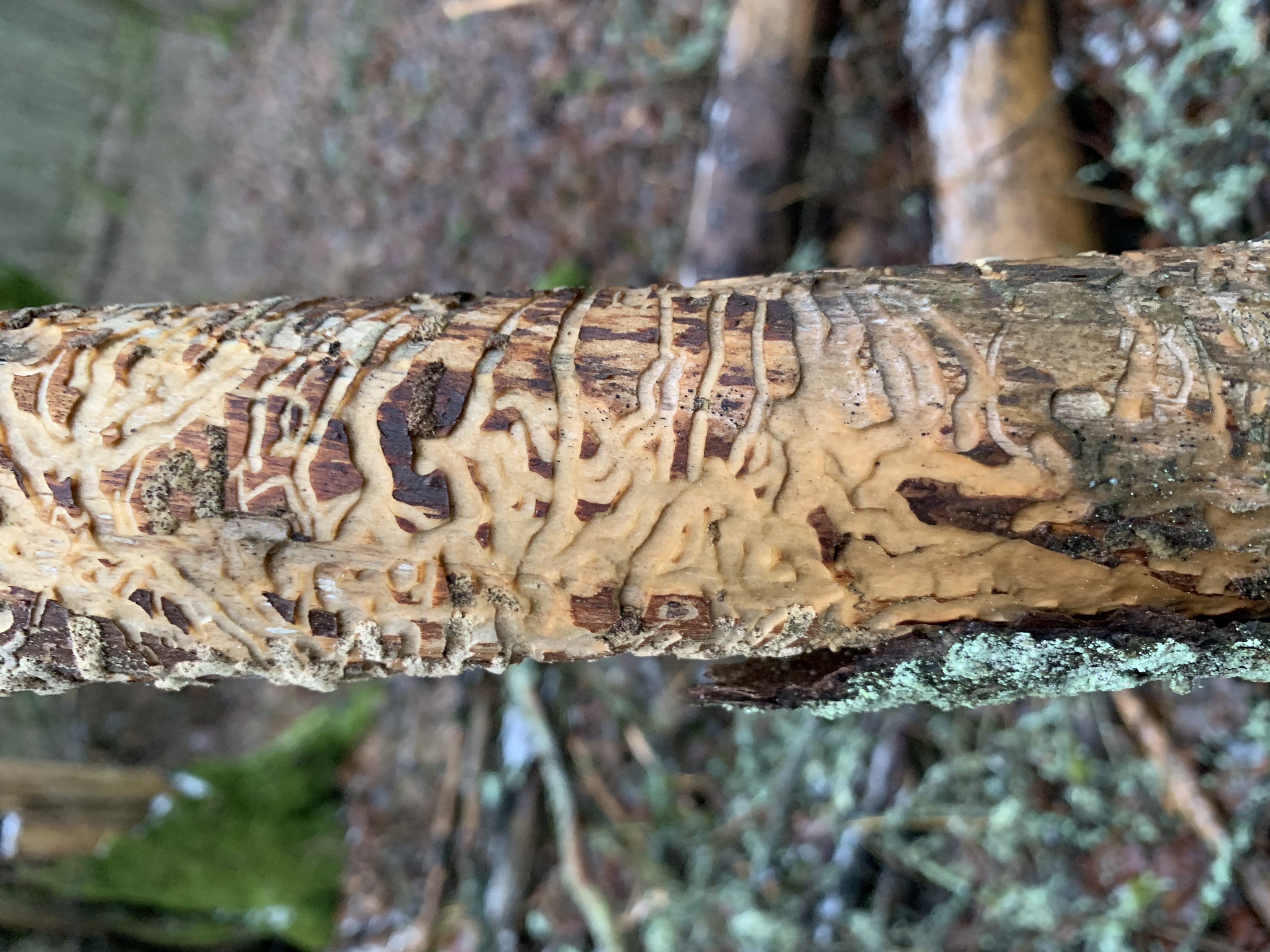 Bark beetle galleries from Poland, photo by Kersey Lawrence