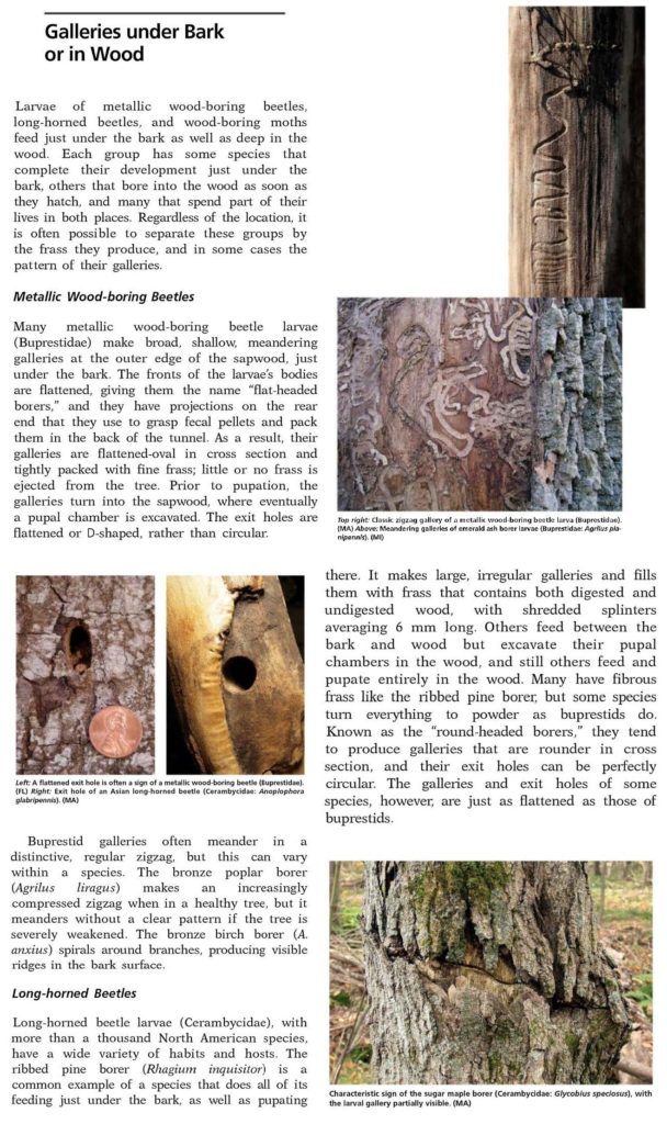 Both David Kennedy and Mark Apgar (USA) correctly called these larval beetle galleries. I lean towards Buprestidae, but I’m not 100% sure what group of wood-boring beetles they are. There is some info, below, from Charley Eiseman and Noah Charney’s book, Tracks & Signs of Insects and Other Invertebrates – A Guide to North American Species.